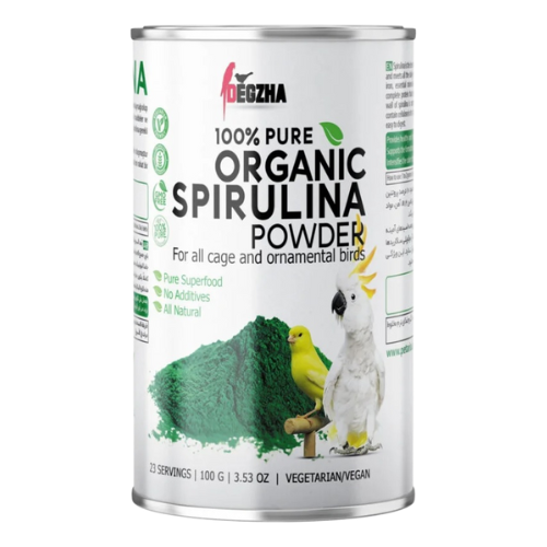 اسپیرولینا بهترین منبع پروتئین گیاهی با حدود ۷۰ درصد پروتئین است و تمام نیاز های روزانه پرنده را به بتاکاروتن ، ویتامین B12 ، آهن ، مواد معدنی ضروری و گاما لینولنیک اسید را برآورده می کند .