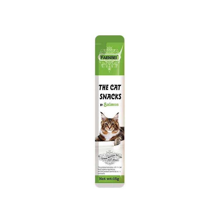 وزن 15 گرم گونه حیوان گربه طعم سالمون پروتئین 3.8% چربی 1% فیبر 2.5% خاکستر 1% رطوبت 87% برند فنبی کشور سازنده چین