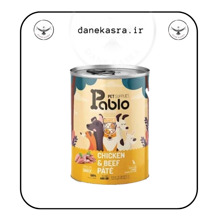 کنسرو سگ پابلو طعم گوشت و مرغ مدل پته وزن 800 گرم