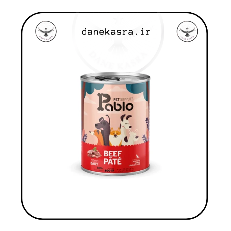 کنسرو پته سگ بالغ پابلو طعم گوشت خالص وزن 800 گرم Pablo Dog